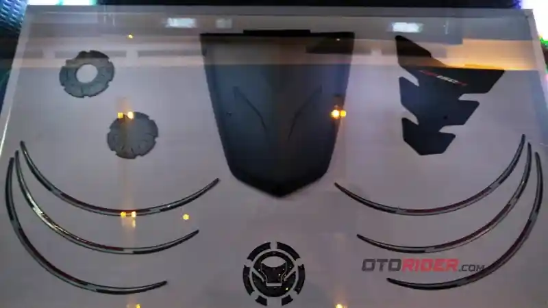 Aksesori yang ditawarkan seperti Seat Cover, Tank Pad, Radiator Protector, Fuel Lid Pad, Engine Cover, Fender Eliminator dan Wheel List Sticker. Untuk harga aksesori ditawarkan dengan Harga Eceran Tertinggi (HET) mulai dari Rp 40 ribu hingga Rp 380 ribu.