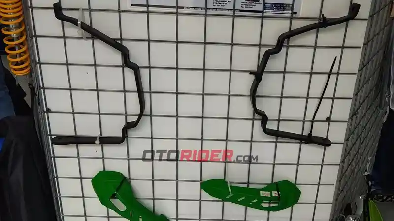 Sebut saja brush guard, attachment , visor, fork cap cover, head light guard dan slide slider. Adapun brush guard berfungsi untuk melindungi tangan jika terjadi kecelakaan.