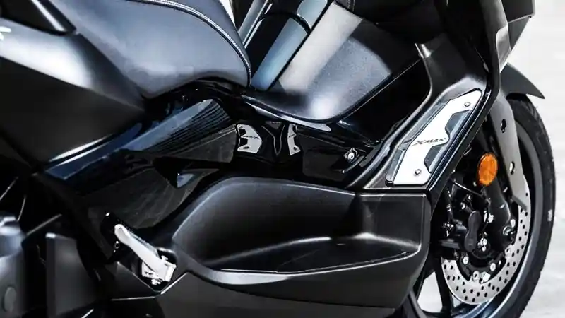 Yamaha XMax Special Edition Iron Max dipamerkan dengan warna abu-abu doff, dan sword gray yang diberikan logo baru agar terlihat lebih elegan. Kemudian di bagian footrest sudah menggunakan bahan aluminium dengan aksen krom dan warna mika lampu belakang smoked.