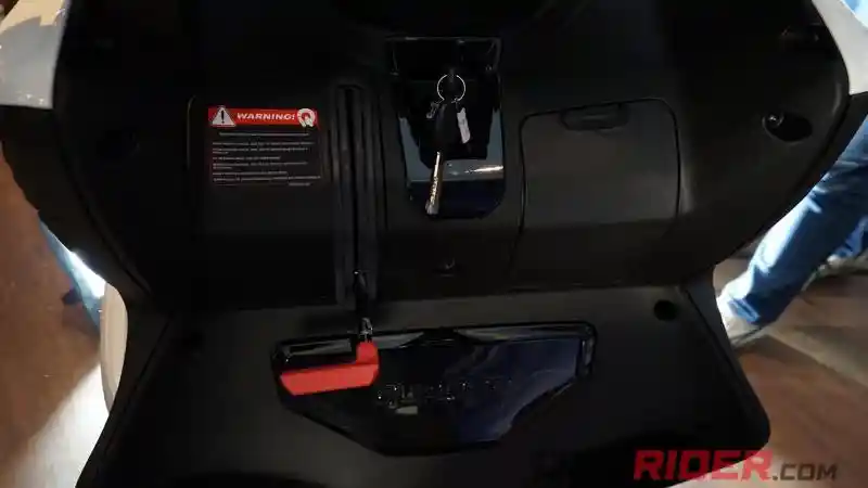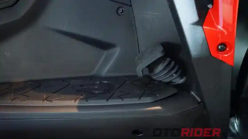 Terakhir, sistem rem di bagian jok kanan yang serupa dengan rem tangan. Fitur tersebut berfungsi untuk mengunci roda saat motor diparkir.