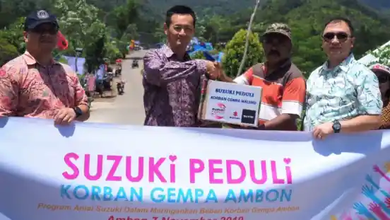 Sebagai bentuk kepedulian pasca bencana, PT Suzuki Indomobil Sales (SIS) salah satu APM Suzuki menyerahkan bantuan kepada korban gempa Maluku dalam program CSR “Suzuki Peduli Gempa Maluku 2019”. Bekerja sama dengan dealer resmi mobil Suzuki di Ambon yaitu PT Tridharma Adigraha, penyerahan bantuan dilakukan langsung oleh Seiji Itayama, Presiden Direktur PT SIS dan Roberth Tanamal, Komisaris PT Tridharma Adigraha ke posko pengungsian di Desa Liang, Desa Waai, dan Desa Tulehu.