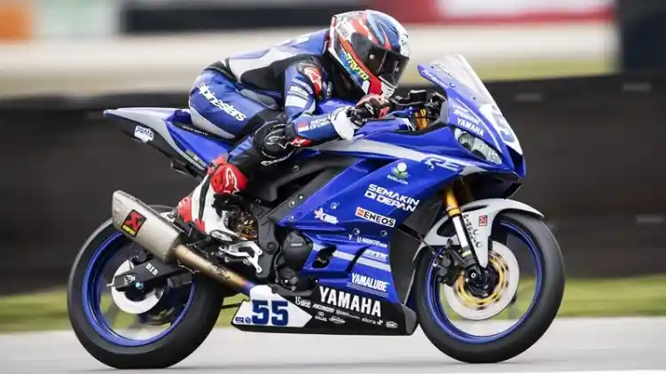 Pembalap WSSP300 dari tim Yamaha, yakni Galang Hendra turut memeriahkan gelaran Gaikindo Indonesia International Auto Show (GIIAS) 2019