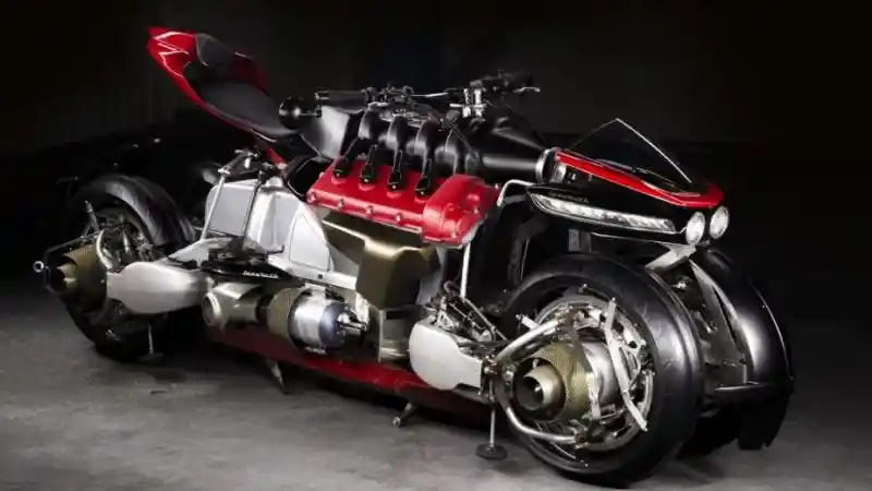 JIka dilihat, motor dengan desain yang aneh ini menggunakan konfigurasi dua roda di depan dan belakang. Di tengah motor ini terdapat mesin jet yang ketika diaktifkan, keempat roda itu akan terangkat meyamping. Sehigga roda itu berperan sebagai sayap untuk dapat mengontrol arah terbang motor ini.