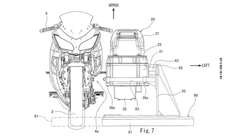 Dalam gambar ini juga menjelaskan nantinya motor ini akan dibekali baterai lithium ion, yang dapat diganti ketika daya habis. Dalam bocoran gambar ini dapat disimpulkan, bahwa Kawasaki berbeda dengan pabrikan lainnya yang memakai basis motor standar atau enduro sebagai basis motor listriknya. Kawasaki malah memilih model sport dengan fitur baterai yang dapat ditukar!