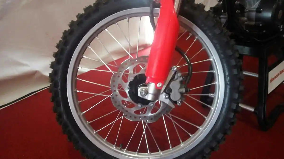 Soal ban, pada CRF150L menggunakan ban pacul berukuran 21 inci pada bagian depan dengan tapak 2.75 dan ban pacul berukuran 18 inci dengan ukuran 4.10. Ukuran ban tersebut ternyata sama dengan yang dimiliki Yamaha WR 155R, yakni ban dengan tapak 2.75 - 21 inci dibagian depan dan ban dengan tapak 4.10 - ring 18 inci di bagian belakang.