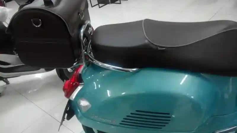 Masih dari dealer yang sama, juga tersedia Vespa GTS300ie Limited Edition Anniversary 70 th yang sporty dan dibanderol Rp 280 juta, dan juga bisa dibeli secara cash. Coba lirik foto di bawah, pada bagian belakang ada tas ekslusifnya loh.