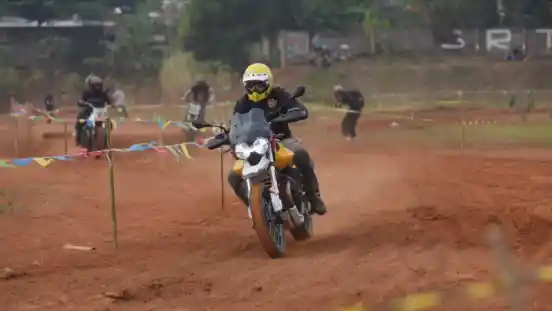 Di booth Moto Guzzi, para pengunjung yang datang dapat melihat langsung keluarga baru Moto Guzzi yang menganut DNA adventure ini. Tak ketinggalan, pengunjung yang datang juga bisa melihat aksi pertama V85TT di Indonesia. Salah satu aksinya, ternyata juga dipacu di lintasan tanah oleh Reviewer sekaligus pemimpin redaksi OtoRider, Manut.