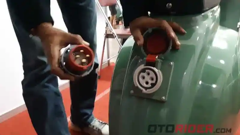 "Kami tampilkan Vespa bertenaga listrik baterai. Awalnya konsep dari teman di Surabaya, cuma kami ingin pengisiannya tanpa langsung listrik. Makanya alternatif energi lain yang bisa kami dapatkan ya dari solar cell ini. Karena kan konsep Vespa yang langsung dicolok ke listrik sudah ada," ujar Heru saat ditemui OtoRider di Yogyakarta, Sabtu (21/9).