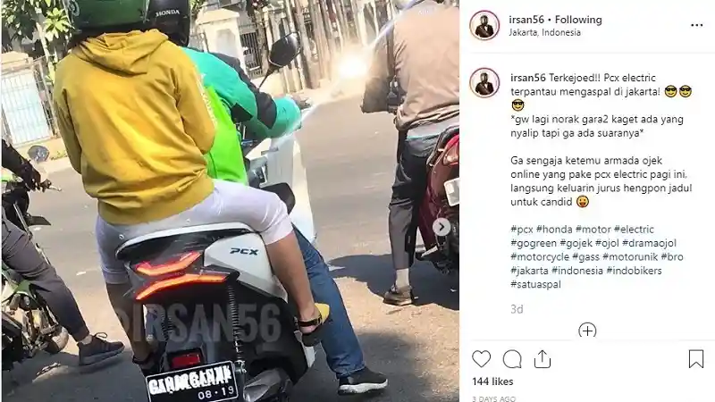 Terjawab sudah kehebohan lini masa dunia maya soal Honda PCX Electric dipakai ojek online. Beberapa hari yang lalu, media sosial Instagram dihebohkan akan adanya penampakan Honda PCX Electric yang digunakan salah satu rider aplikasi transportasi digital. Postingan itu diupload oleh akun Instagram @irsan58 beberapa waktu yang lalu. Hingga kini, postingan @irsan58 di Instagram telah mendapatkan 144 likes dan mendapatkan 56 komentar dari netizen.
