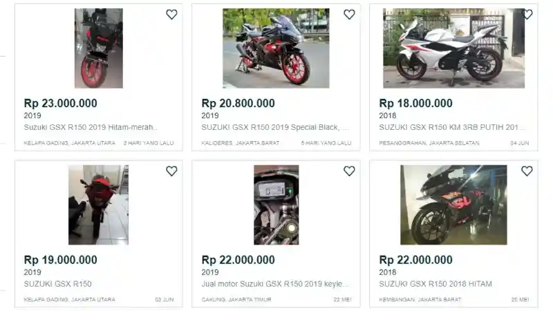 Berdasarkan pantauan OtoRider di situs jual beli motor bekas online, harga GSX-R150 memiliki rentang yang tak jauh berbeda antara satu dan lainnya. Nah, kali ini unit yang dipilih adalah keluaran tahun 2018 hingga 2019 dan merupakan area sekitaran Jakarta.