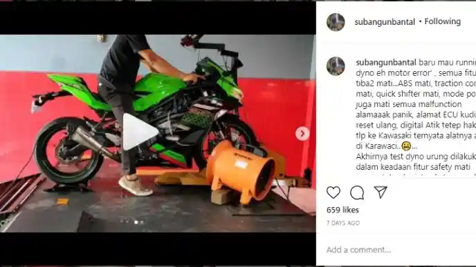 "Karena saat itu saya ada agenda test Ninja ZX-25R di Sentul, saya tunda dyno testnya dan langsung ke Sentul. Selama di Sentul, semua fitur engga hidup, check engine masih menyala terus. Karena sebelumnya motor sehat jadi saya abaikan dan berpikir besok baru ke dealer. Tetapi setelah jam 16:00 ternyata semua fitur hidup lagi," ujar Joko menjelaskan.