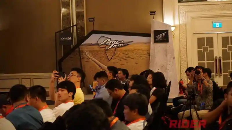 Di beberapa sudut ruangan, terdapat booth bertuliskan Rebel dan Africa Twin. Apakah motor tersebut yang akan diluncurkan Honda hari ini?