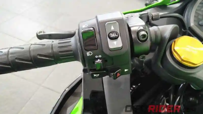 Beralih ke panel instrumennya, motor ini menggunakan perpaduan analog dan digital. Di sana, pengendara dapat melihat informasi speedometer, indikator posisi gigi, indikator bahan bakar, sisa jarak tempuh, odometer, trip meter, penunjuk jam, Power Mode, KTRC, hingga KQS. Keseluruhan informasi ini dapat diatur melalui tombol yang terletak di sisi kiri stang.