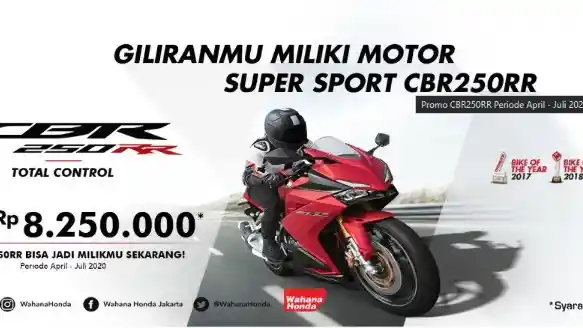 Berdasarkan website Wahana Honda, CBR250RR mendapatkan diskon mencapai Rp 8.250.000. Diskon ini berlaku pada setiap pembelian tunai maupun kredit. Periode potongan harga ini berlaku mulai April hingga Juli 2020.