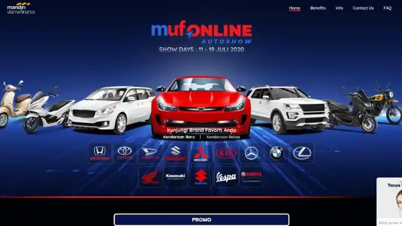 "MUF (Mandiri Utama Finance) menjawab kebutuhan tersebut melalui inovasi yang mempermudah pembelian kendaraan. Melalui MOAS, pelanggan dapat memilih mobil dan motor serta paket pembiayaan tanpa melakukan pertemuan langsung secara fisik melalui website www.mufautoshow.id," ujar Stanley.