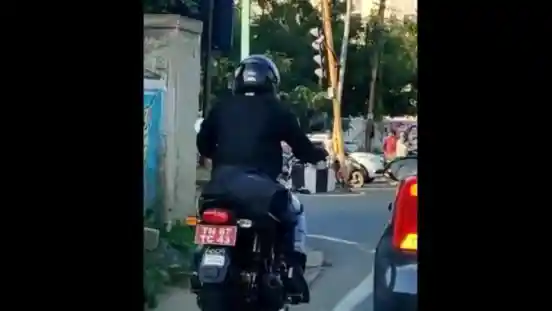 Posisi duduk pengendara yang tegak memperkuat spekulasi bahwa motor tersebut adalah varian baru dari Interceptor 650. Namun yang menarik tangkapan gambar ini menunjukkan sebuah knalpot tunggal di samping. Sehingga spekulasi mengenai Royal Enfield Interceptor bermesin 350 cc semakin kuat.