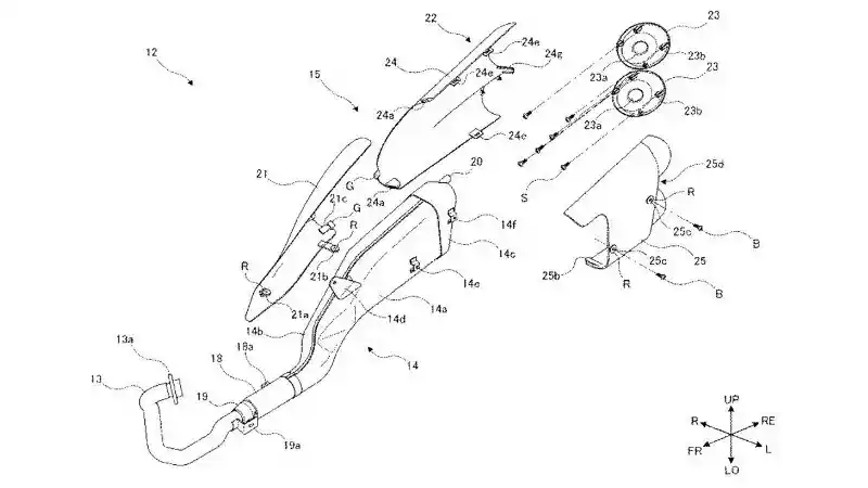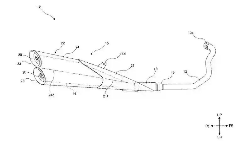 Berdasarkan gambar paten yang beredar, desain knalpot memperlihatkan adanya dua buah lubang pembuangan yang dipadu dengan sebuah header. Desain kali ini juga menunjukkan penampilan yang sederhana namun tetap menarik perhatian.