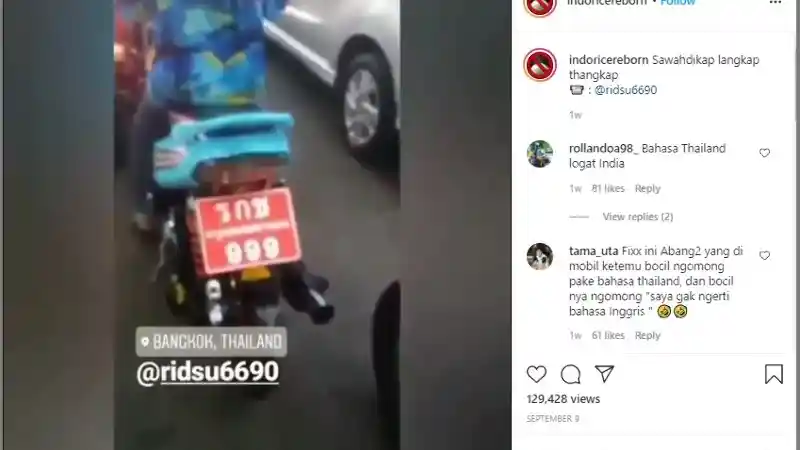 Kejadian tersebut sempat diabadikan dalam sebuah video yang kemudian di unggah oleh akun Instagram @indoricereborn. Dalam video tersebut terdapat pengendara motor yang menggunakan pelat Thailand berwarna merah. Sebagaimana pelat kendaraan dari negeri gajah tersebut, aksara Thailand pun tertera di belakang motor.