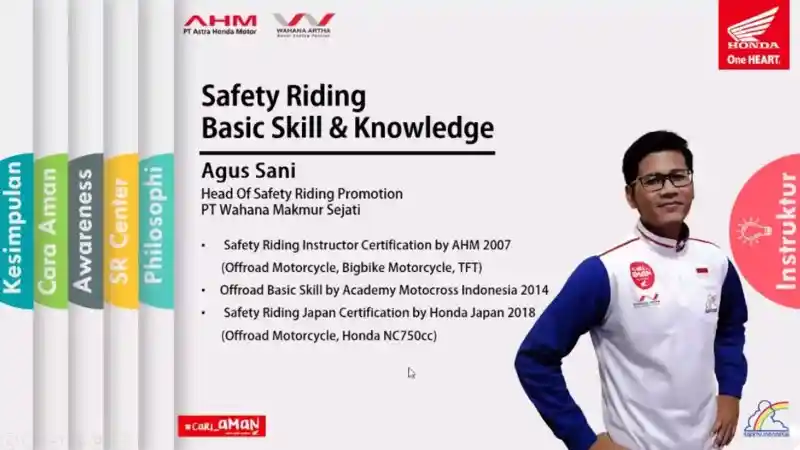 Meski tanpa praktek, edukasi berkendara aman ini juga penuh dengan pengetahuan, tips, hingga info landasan hukum terkait berlalu lintas. Hal ini pun disampaikan langsung oleh Agus Sani sebagai Head of Safety Riding Promotion Wahana.