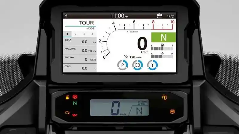 Honda NT1100 2022 juga dilengkapi dengan beberapa fitur keselamatan penunjang perjalanan seperti Honda Selectable Torque Control (HSTC), wheelie control, engine braking, dan 5 mode berkendara yang terdiri dari Urban, Rain serta Tour dan dua mode yang dapat dikustomisasi sesuai keinginan. Selain itu, tersedia panel instrumen digital 6,5 inci touchscreen lengkap dengan konektivitas Apple CarPlay dan Android Auto.