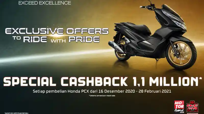 Honda PCX 150 tengah mendapatkan penawaran yang cukup spesial di awal tahun 2021 ini. PT Astra Honda Motor (AHM) memberikan program cashback alias uang kembali.