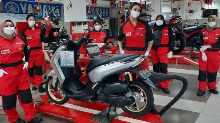 Acara kemudian dilanjutkan dengan edukasi terkait tips tata cara melakukan pengecekan ringan motor sebelum berkendara serta penjelasan aplikasi My Yamaha Motor. Uniknya, selama sesi ini para peserta mengenakan seragam teknisi Yamaha.