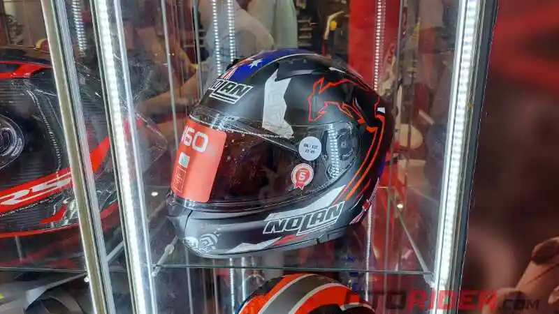 "Selama di GIIAS 2022, pertama pasti kami bawa produk baru juga ya, selain diskon ya. Diskon sudah pasti ada. Kalau produk barunya, ada Nolan itu keluarin N60-6, itu produk lanjutan dari N60-5. Terus kami juga ada X-Lite X-1005, itu modular flip up. Ada juga X-803RS special edition-nya 10 tahun Casey Stoner, itu sudah full carbon," ujar Dimas pada OtoRider, Kamis (11/8).