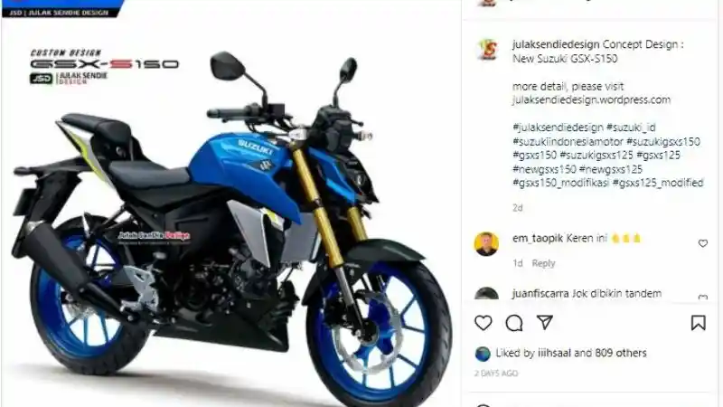 Salah satu yang dikenal di Indonesia untuk membuat desain rendering tersebut adalah Julak Sendie Design. Desain rendering Suzuki GSX-S150 itu diunggah di akun Instagramnya. Gambar rendering digital itu mencoba memberikan bayangan bagaimana GSX-S150 jika mendapatkan penyegaran.