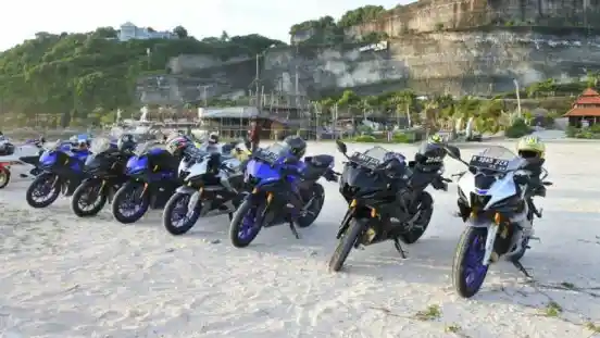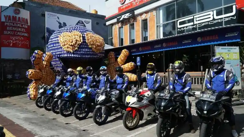 Lalu, bagaimana keseruan puncak aktivitas bLU cRU Fun Riding "Road to Mandalika" di Bali dan Lombok? Pada Kamis (17/3) rangkaian acara dimulai dengan rolling city dari titik start area Yamaha Flagship Shop Denpasar menuju ke Rock Bottom Jimbaran.