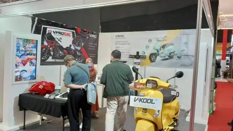 "Kami memiliki produk dengan ukuran kecil untuk panel instrumen sepeda motor," terang Rini, penjaja produk di booth V-Kool pada gelaran IMOS 2022.