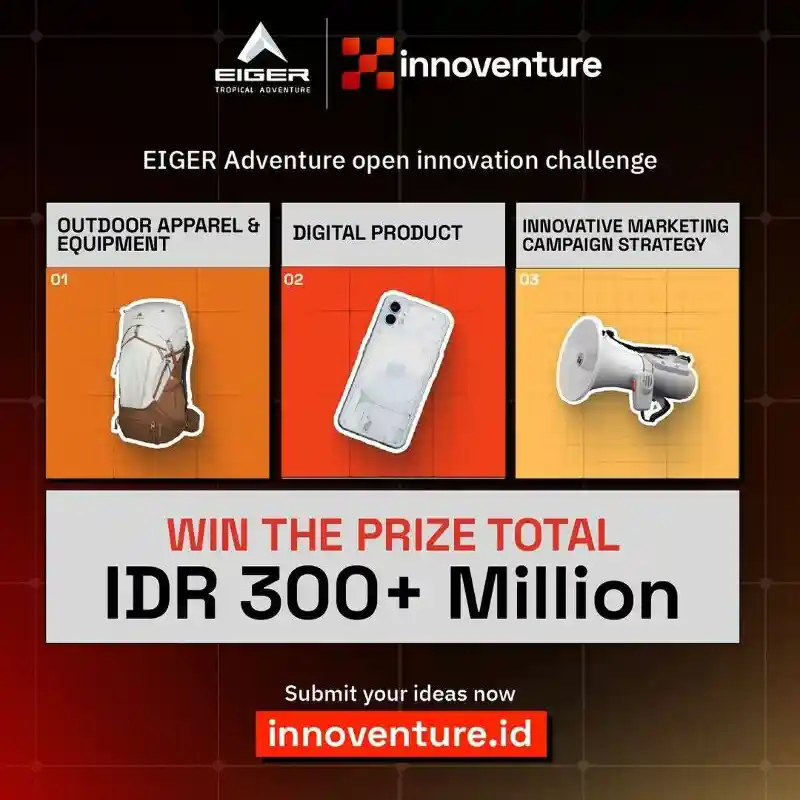 "INNOVENTURE terbuka untuk kalian yang memiliki solusi inovatif untuk para petualang di segmen aspirational. Apakah kamu seorang wirausaha pemula, inovator, atau hanya seseorang dengan ide brilian, kami mendorong kamu untuk berpartisipasi dan wujudkan visi kamu bersama EIGER," ucap Jason.