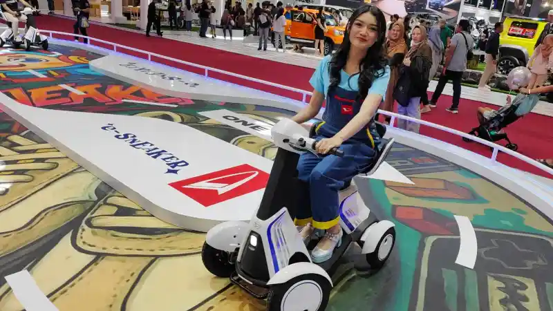 Salah satu daya tarik booth Daihatsu yang berlokasi di Hall 7 adalah E-Sneaker, kendaraan mobilitas personal yang dirancang untuk memberikan kebebasan bergerak bagi semua kalangan, termasuk mereka yang memiliki keterbatasan fisik.