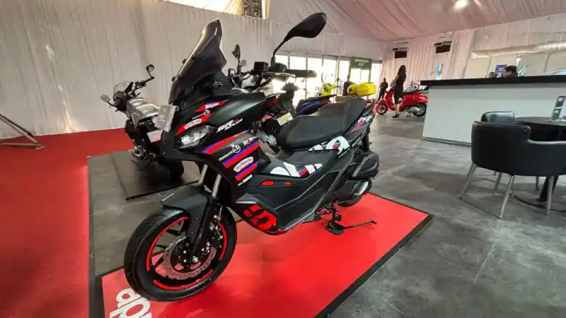 Aprilia SR-GT 200 Replica tampil baru memukau di GIIAS 2025 dengan nuansa black matte dan aksen merah-ungu khas RS-GP.