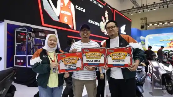Untuk kategori Favorite Booth, Honda meraih penghargaan di kelas >500 sqm sekaligus menjadi pemenang Interactive Booth.
