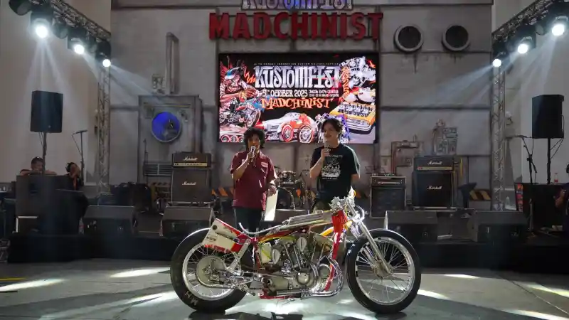 OTORIDER - Kustomfest 2025 sukses berlangsung di Jogja Expo Center (JEC) pada akhir pekan lalu. Perayaan 'Lebaran' kustom kulture Indonesia ini menyajikan beragam karya terbaik yang berpadu dengan budaya kustom. Kustomfest 2025 bertajuk 'Madchinist' ini bahkan dihadiri oleh beberapa pecinta kustom lintas negara, seperti Malaysia, Thailand, Singapura, Brunei Darussalam, dan Jepang.