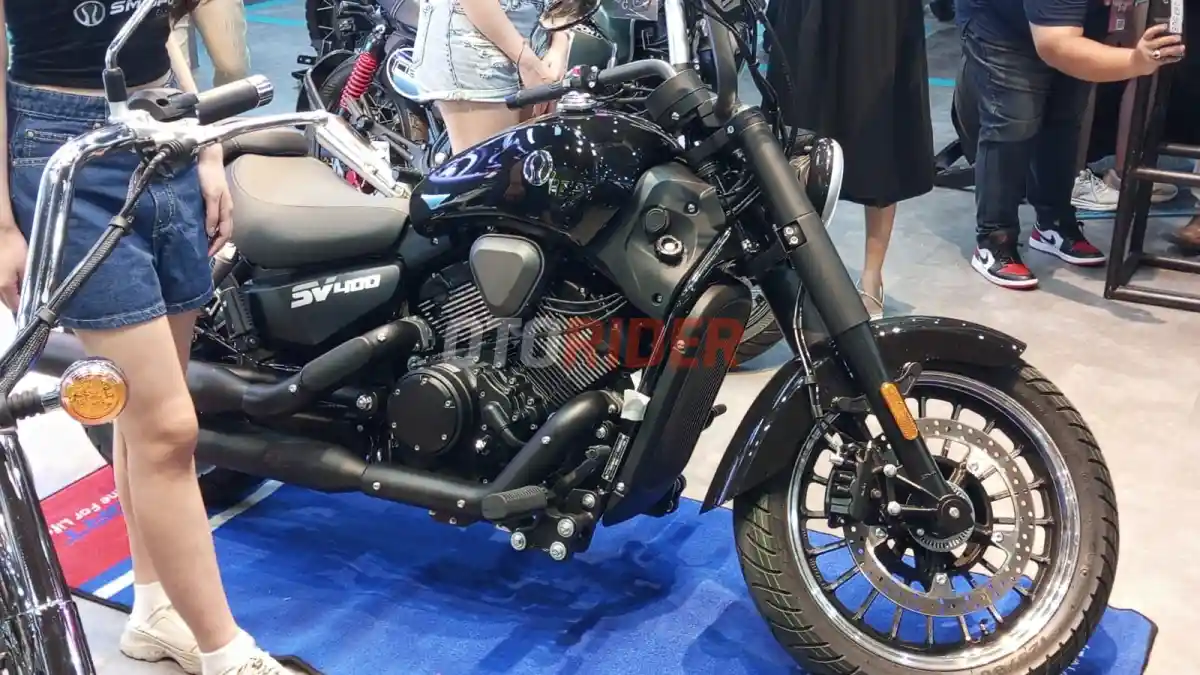 Ada juga moge cruiser entry level SM Sport SV400 tampil sebagai motor touring bergaya klasik namun dengan teknologi modern.