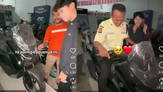 Motor tersebut dibayar tunai dan tampak Imron dan istri cukup terharu dengan pemberian dari konten kreator tersebut.
