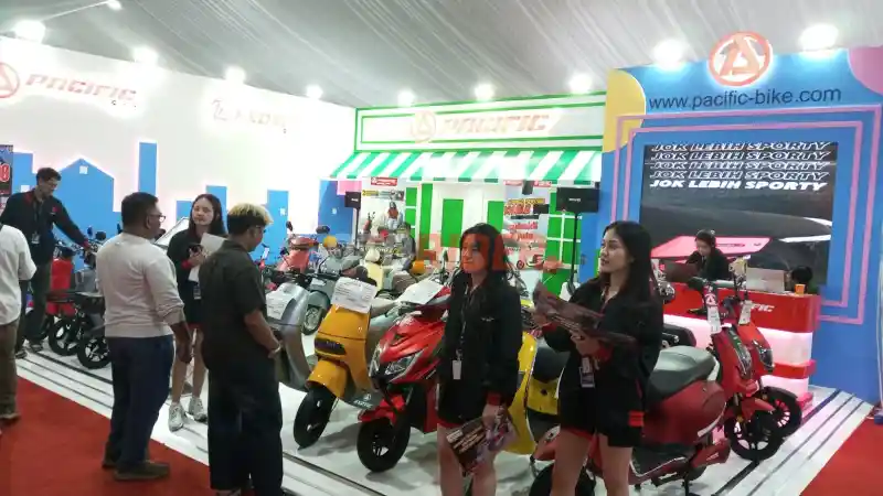 Salah satu peserta, Pacific E Motor, memajang beberapa motor listrik dan sepeda yang menjadi produk yang berpabrik di Semarang, Jawa Tengah, itu.
