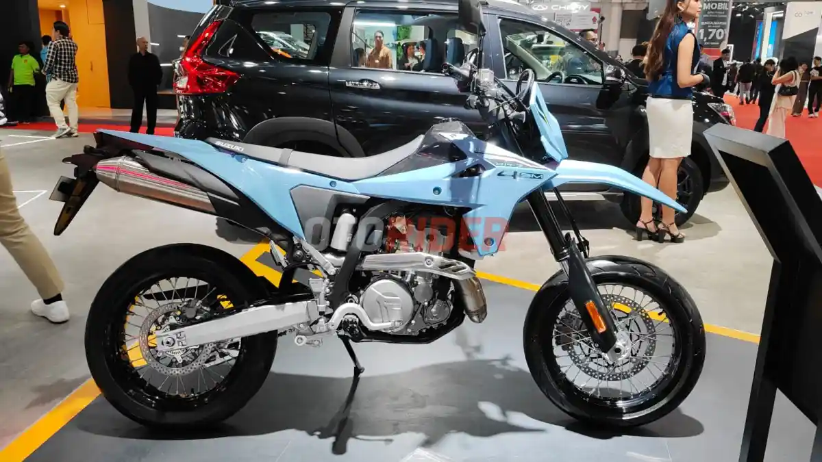 OTORIDER - Suzuki kembali menyita perhatian pengunjung Indonesia International Motor Show (IIMS) 2026 dengan menghadirkan Suzuki DR-Z4SM berbalut warna Sky Gray.
