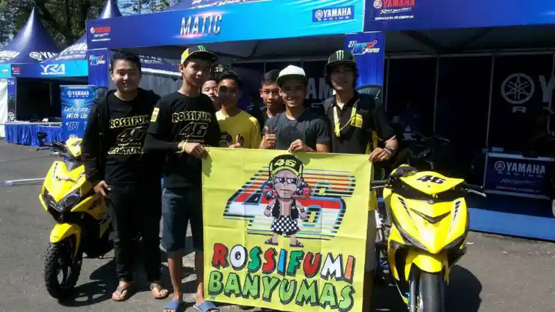 Rupanya fans Valentino Rossi di Kabupaten Banyumas, khususnya di ibukota Purwokerto, selalu datang tiap tahun untuk menyaksikan langsung Yamaha Cup Race di sirkuit. "Kami selalu datang ke sirkuit untuk nonton Yamaha Cup Race. Kali ini sekalian kopdar dan bahas ulang tahun Fan Club Valentino Rossi Indonesia regional Banyumas. Kami suka nonton balap dan motor pribadi juga Yamaha. Saya punya MX King dan Vega ZR yang ditempelin logo 46 dan stiker fans club. Dua-duanya dipakai sehari-hari," cerita Andi, Koordinator Fans Club Valentino Rossi regional Banyumas. "Saya sudah naksir Jupiter MX yang waktu iklannya pakai Rossi tapi baru kesampean beli sekarang MX King," tambah Andi.