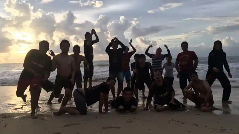 Sebelum berangkat ke lokasi semua member berkumpul di Irti Monas dengan membahas perjalanan dan tikum (titik kumpul) kedua untuk istirahat. Berangkat dari Jakarta, Jumat jam 11 malam. Dan tiba pada hari Sabtu siang dengan tujuan pertama ke Puncak Guha, kemudian beranjak ke Pantai Santolo.
