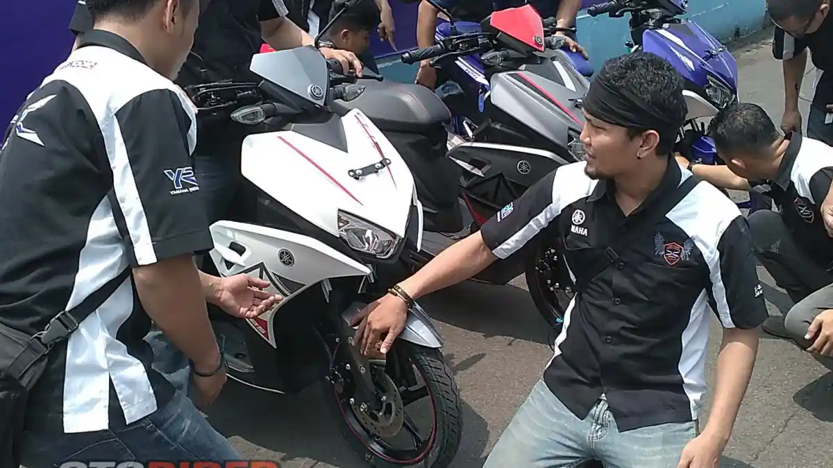 Dari kehadiran Aerox yang punya basis dari Yamaha Xeon 125, para personil klub yang berada dibawah naungan Yamaha Riders Federation Indonesia (YRFI) ini mengaku mendapat ide modifikasi. “Ada tampilan bodi Aerox yang Movistar MotoGP dan 50 tahun Anniversary Yamaha MotoGP itu bagus buat diterapkan di Xeon kami,” seru pria berkacamata ini.