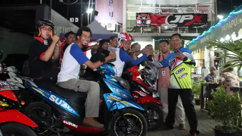 Komunitas roda dua pecinta skuter Suzuki Address, Addressia mengadakan kopi darat (kopdar) dan diskusi bareng tentang keselamatan berkendara.