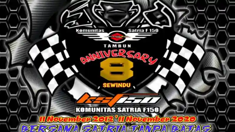 Pengguna Suzuki Satria F150 yang tergabung dalam Komunitas Satria F150 (KSF) 150 Tambun rayakan hari jadinya yang ke-8 tahun. Genap berusia sewindu, komunitas ini berdiri sejak 11 November 2012 di kawasan Tambun, Jawa Barat. Guna merayakannya, KSF 150 Tambun menggelar acara syukuran.