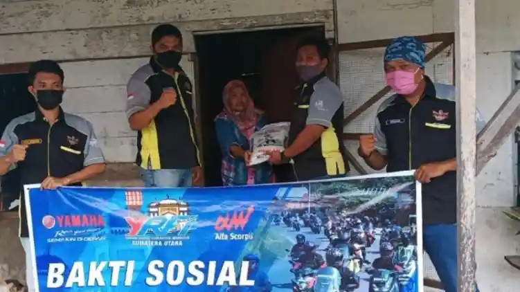 Komunitas motor Yamaha yang tergabung dalam Yamaha Riders Federation Indonesia (YRFI) Sumatera Utara (Sumut) gelar kegiatan bakti sosial. Bersama PT Alfa Scorpii, mereka membantu masyarakat terdampak wabah Covid-19 dengan membagikan 100 paket sembako.