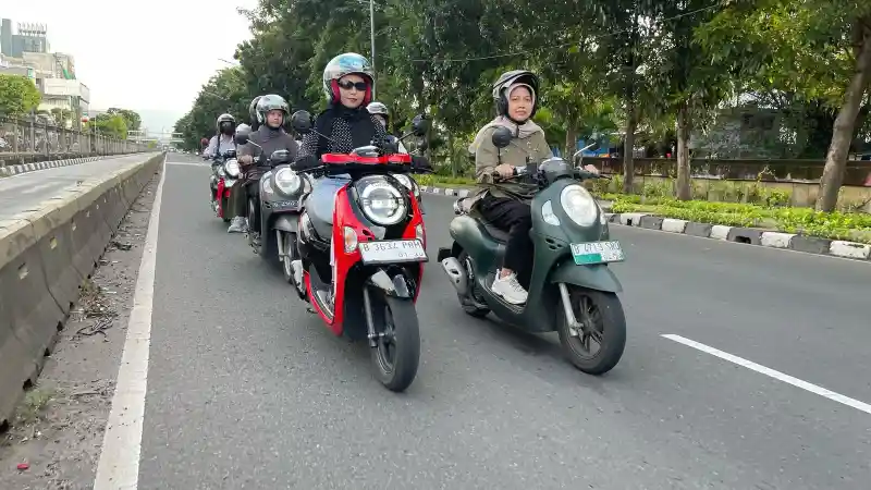 OTORIDER - Sebanyak 20 pengendara perempuan dari komunitas Honda Scoopy di Jakarta untuk menikmati pengalaman Rolling City yang unik dan penuh gaya.