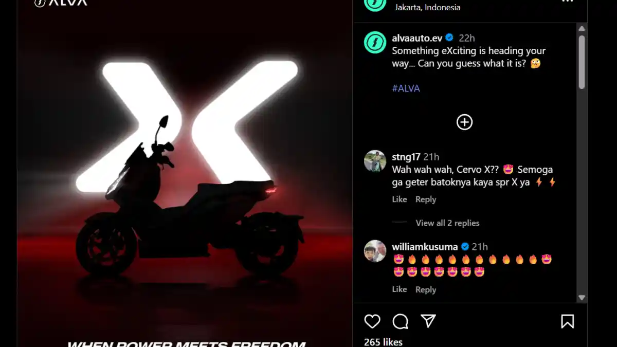 Spekulasi soal model baru makin menguat setelah akun Instagram resmi ALVA, @alvaauto.ev, memposting sebuah siluet motor baru pada Sabtu (17/5). “Hal besar berikutnya hampir tiba. Bersiaplah untuk menjelajahi jalan dengan cara yang berbeda,” tulis ALVA dalam unggahan tersebut. Siluet yang ditampilkan menampilkan garis desain yang menyerupai ALVA Cervo, menimbulkan dugaan bahwa model baru ini bisa jadi merupakan varian baru dari Cervo, mungkin versi dengan spesifikasi berbeda atau penyempurnaan teknologi terkini.
