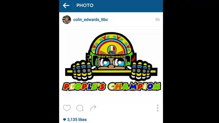 Hal ini diungkapkan lewat akun instagram pribadinya yang mengunggah foto karikatur Rossi dengan kata "People's Champion".