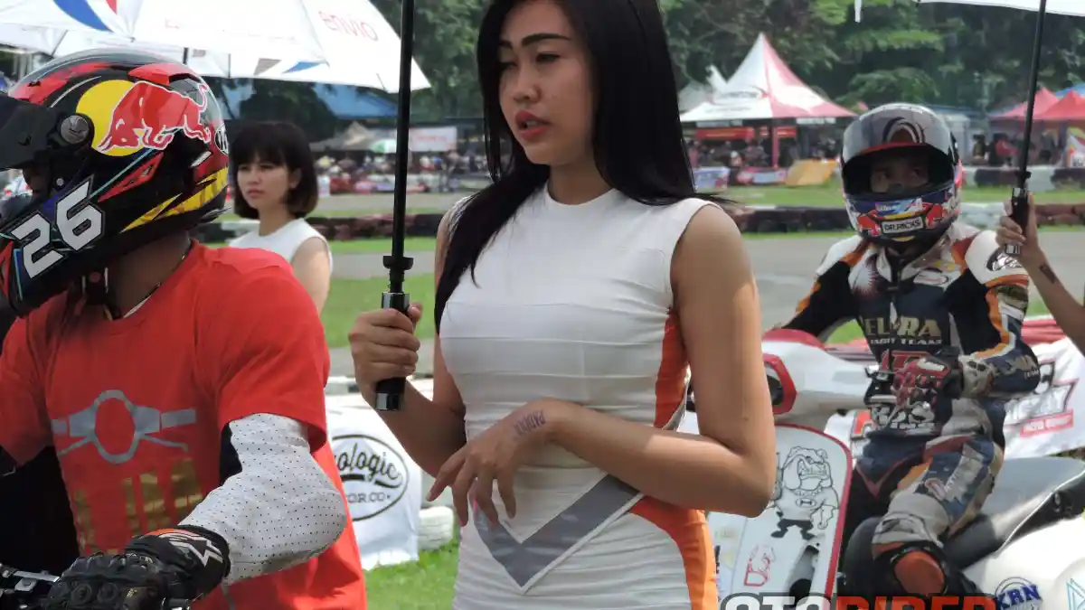 Senyum dan paras jelita gadis payung seolah meredam dan menenangkan pembalap yang lelah dan mungkin sempat mencium aspal sirkuit.