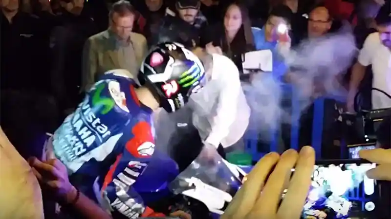 Sial buat Jorge Lorenzo, kaki kirinya terbakar saat melakukan selebrasi kemenangan di kampung halamannya, Mallorca Spanyol. Seperti diberitakan GPxtra, hal ini disebabkan meletusnya slang radiator Yamaha R1 yang digunakan buat selebrasi.